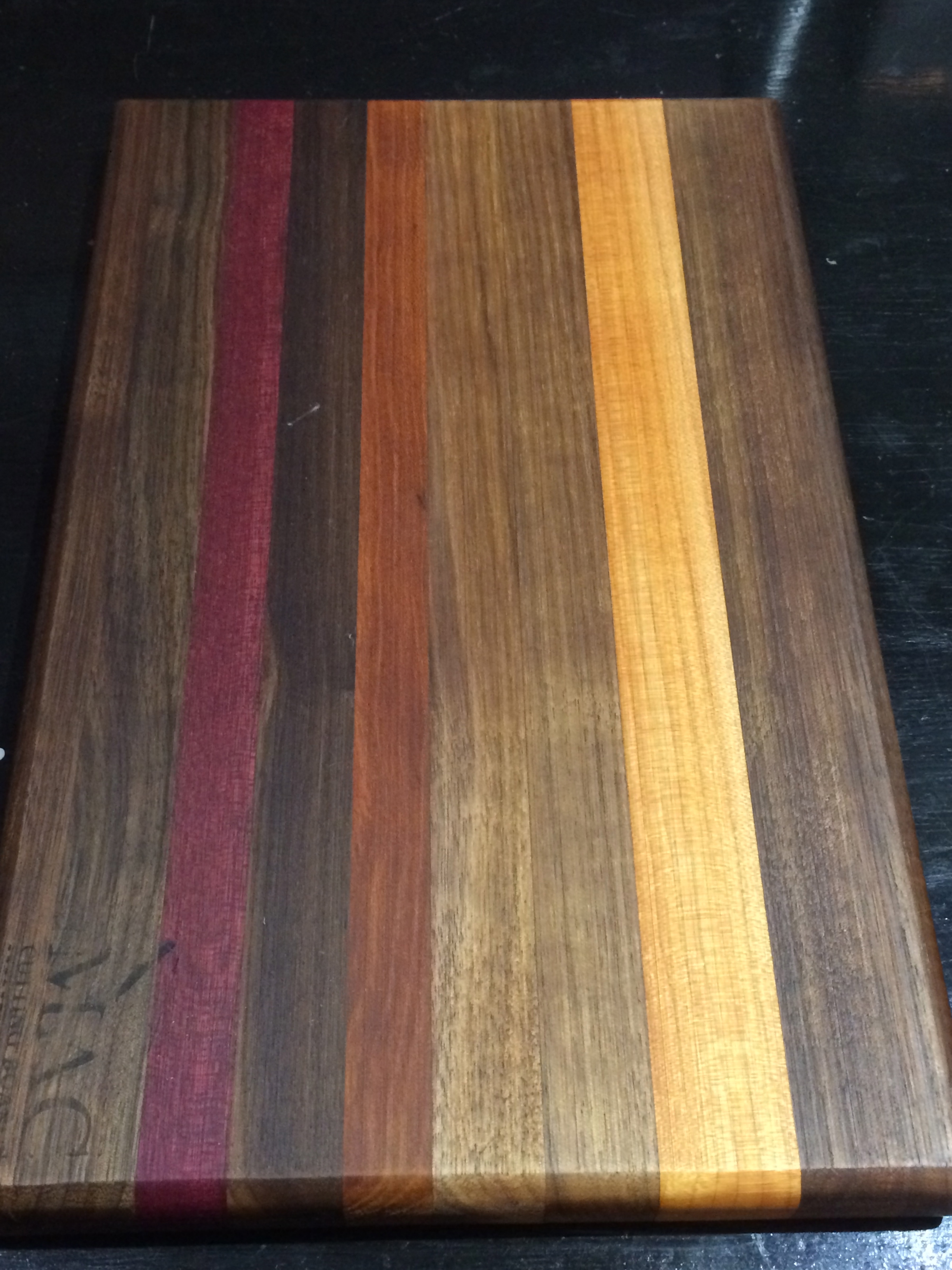 Our custom wood cutting board is made from repurposing and upcycling UNUSED scrap hardwoods. Eco-friendly and sustainable. All sourced locally in the San Francisco Bay Area. We collect UNUSED scrap hardwoods from anyone who works with hardwoods such as furniture makers, cabinet makers and hardwood installers just as long as they are UNUSED, UNTREATED and SCRAPs.