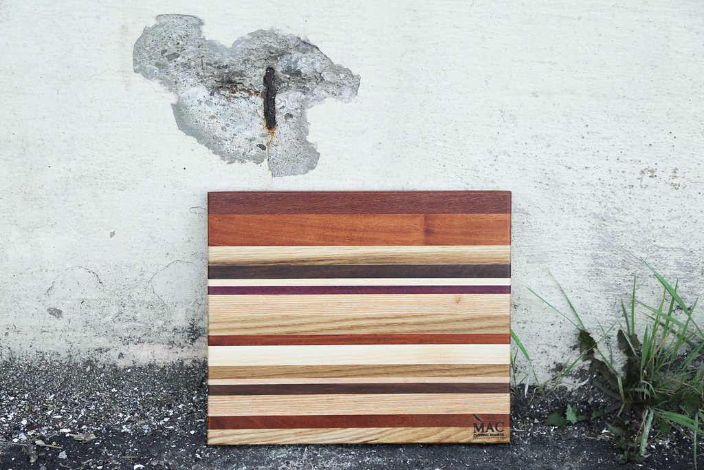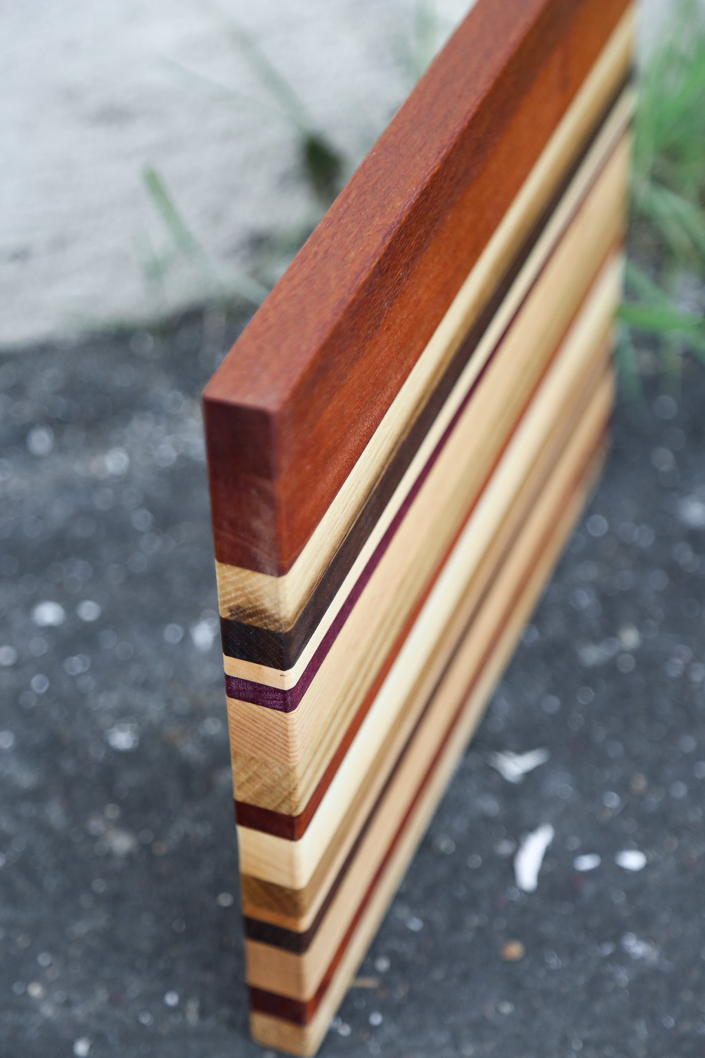 Our custom wood cutting board is made from repurposing and upcycling UNUSED scrap hardwoods. Eco-friendly and sustainable. All sourced locally in the San Francisco Bay Area. We collect UNUSED scrap hardwoods from anyone who works with hardwoods such as furniture makers, cabinet makers and hardwood installers just as long as they are UNUSED, UNTREATED and SCRAPs.