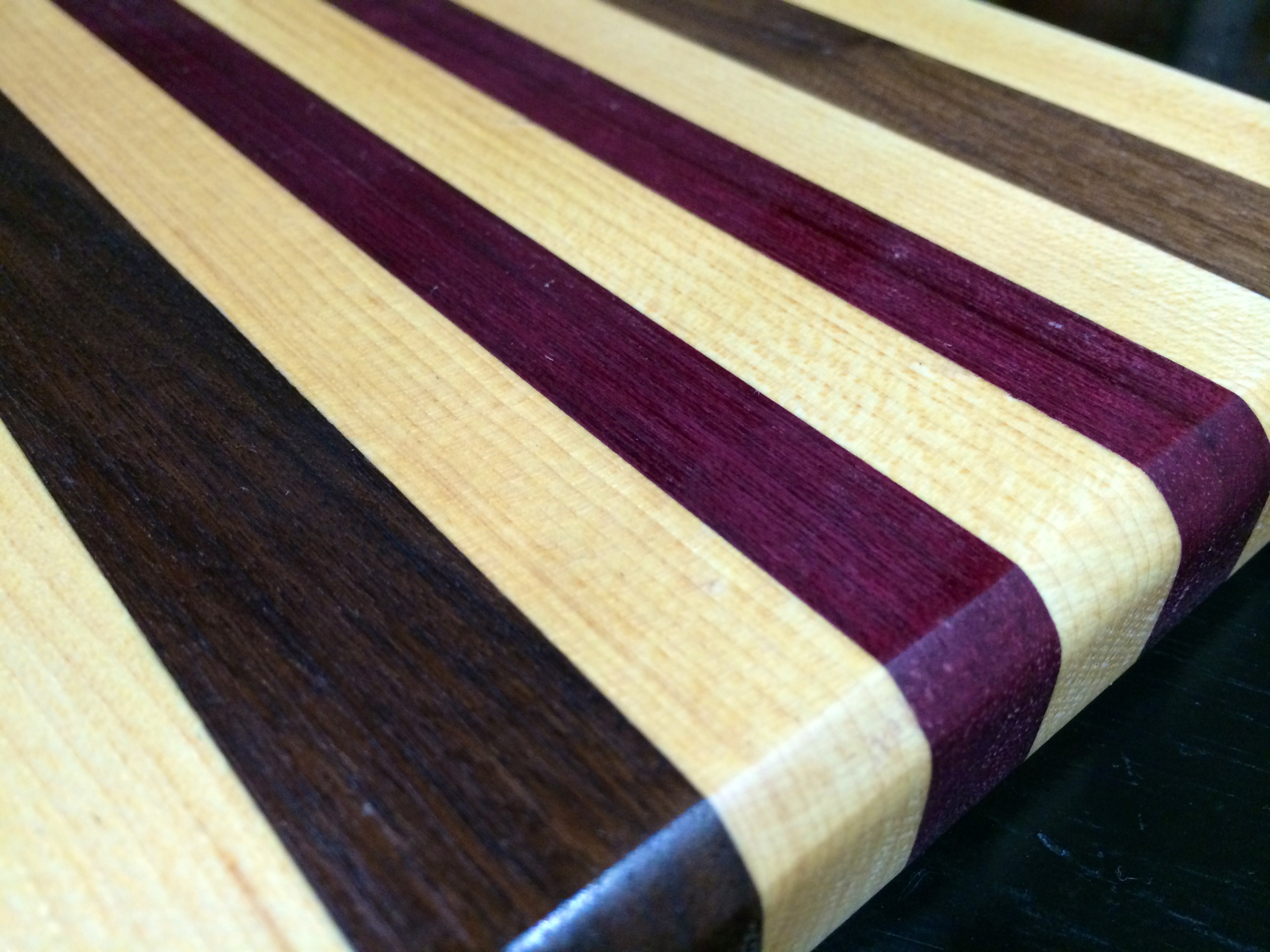 Our custom wood cutting board is made from repurposing and upcycling UNUSED scrap hardwoods. Eco-friendly and sustainable. All sourced locally in the San Francisco Bay Area. We collect UNUSED scrap hardwoods from anyone who works with hardwoods such as furniture makers, cabinet makers and hardwood installers just as long as they are UNUSED, UNTREATED and SCRAPs.