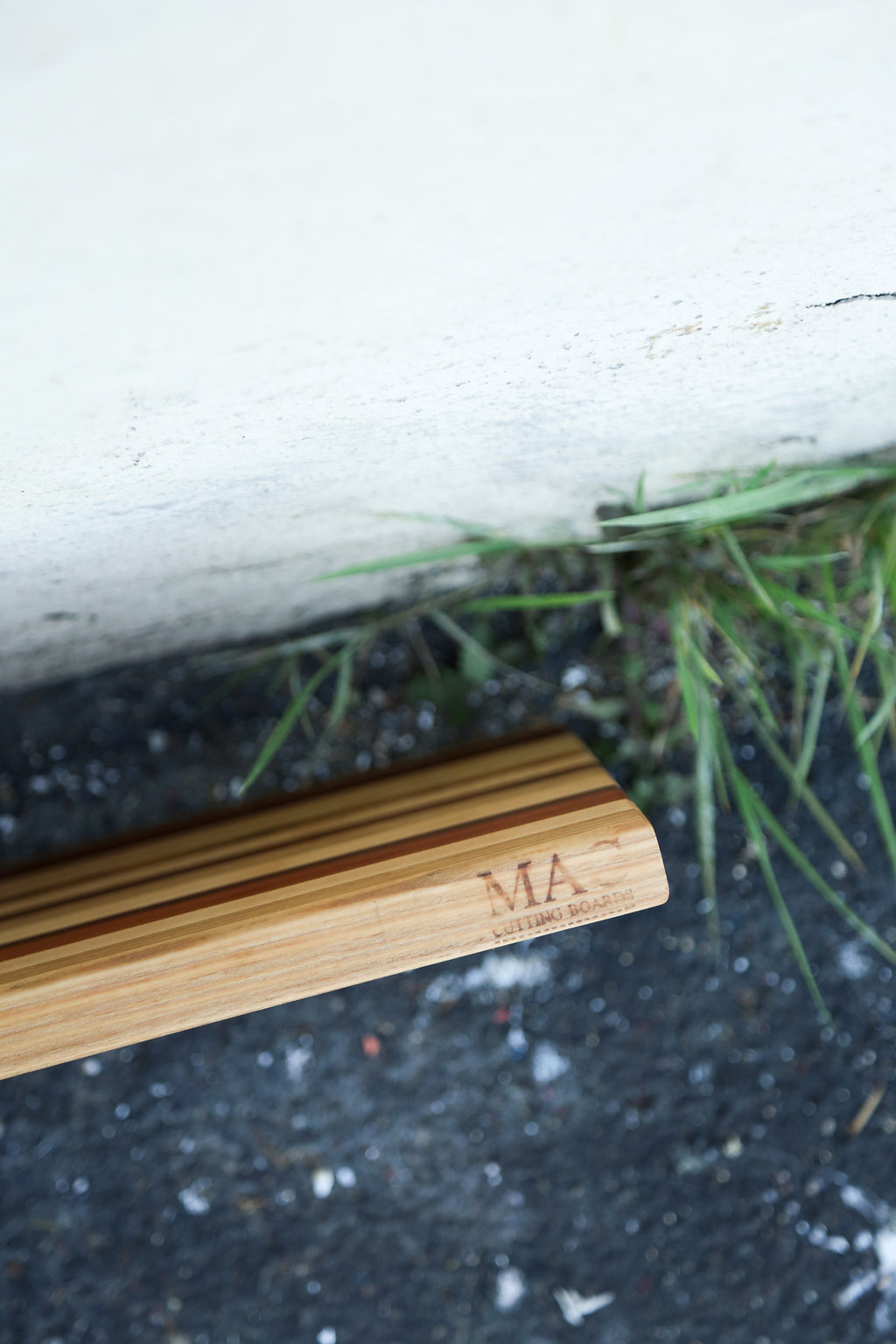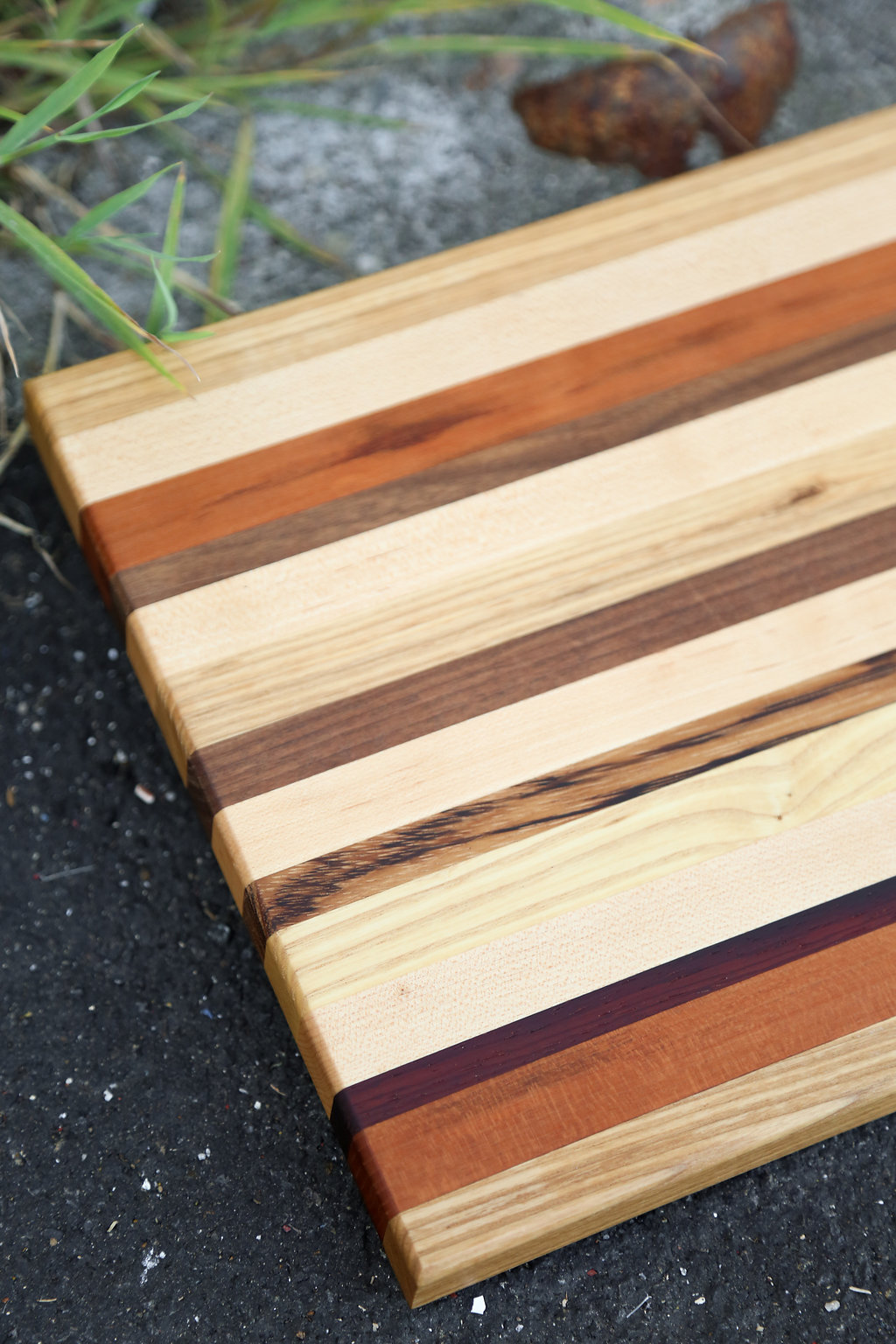 Our custom wood cutting board is made from repurposing and upcycling UNUSED scrap hardwoods. Eco-friendly and sustainable. All sourced locally in the San Francisco Bay Area. We collect UNUSED scrap hardwoods from anyone who works with hardwoods such as furniture makers, cabinet makers and hardwood installers just as long as they are UNUSED, UNTREATED and SCRAPs.